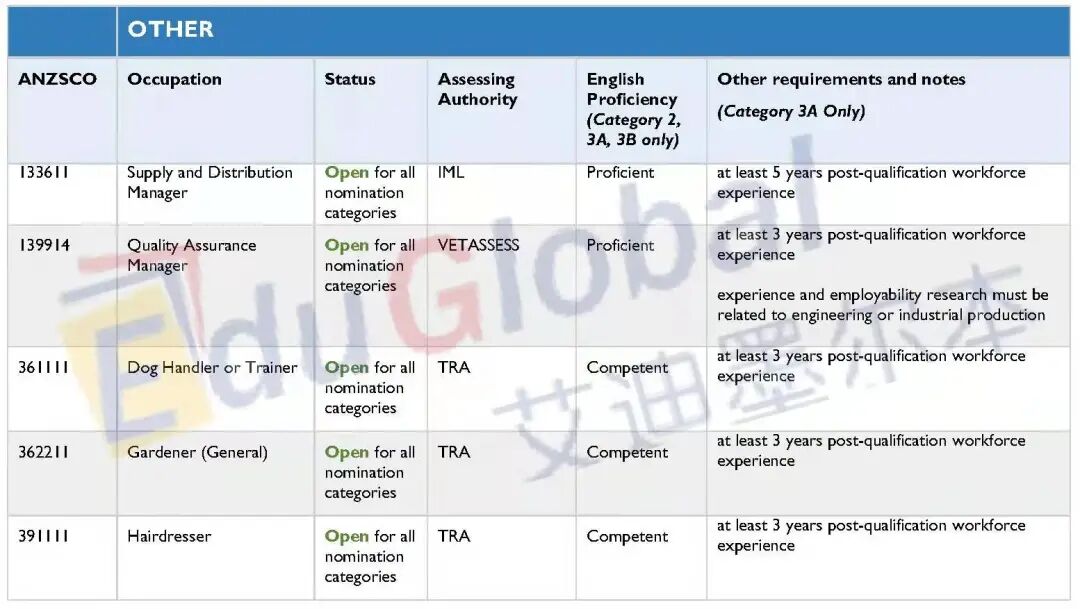 B. 海外491申请人 (Cat. 3A)如果你在海外有某个领域的工作经验,且有意申请塔州的491州担(当前190州担已对海外人士关闭),那么你的职业需要在塔州职业清单上,满足相应的英语、工作经验和注册要求,并并证明自己的岗位确实为市场所需(可通过招聘广告证明)。