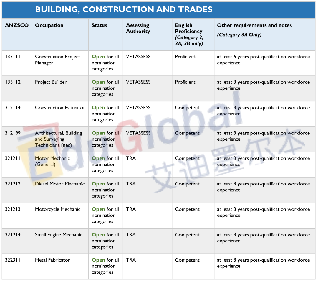 包括31个职业,以技工为主,适合在其他地区读TAFE课程或已取得注册的申请人。
