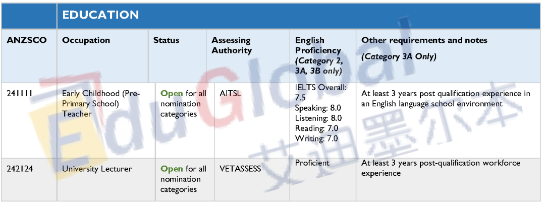 利用此次新增的职业,在墨尔本、悉尼等地学习社工、设计、实验室技术及药剂学的同学,如果在塔州成功工作六个月,将极有可能一步到位获得190签证。此外,教育行业今年的变化也较为显著,取消了往年热门的中小学教师,新增了大学讲师。