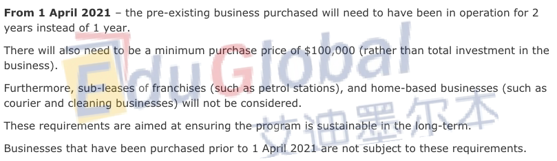 而自4月1日起,昆州对这类签证的申请要求做出了三项调整,主要针对申请人所购买的小生意的以往经营时间及性质,即:
