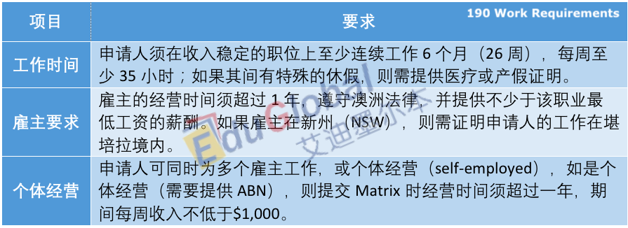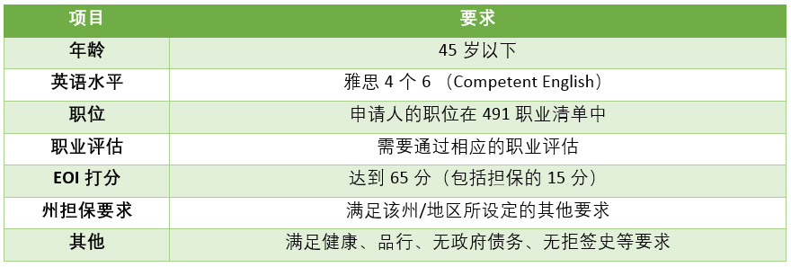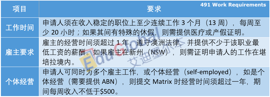 2. 申请人最近三个月必须在堪培拉定居并工作;3. 申请人当前做的工作,需要满足下列条件:
