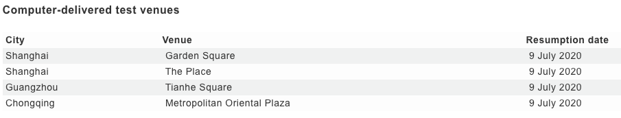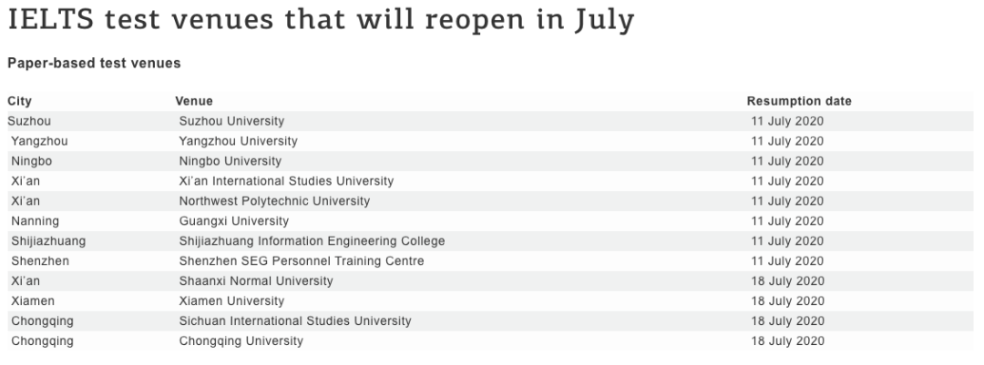 7月11日:开放7座城市的8所纸质考试中心,包括苏州、扬州、宁波、西安(2个考点)、南宁、石家庄和深圳