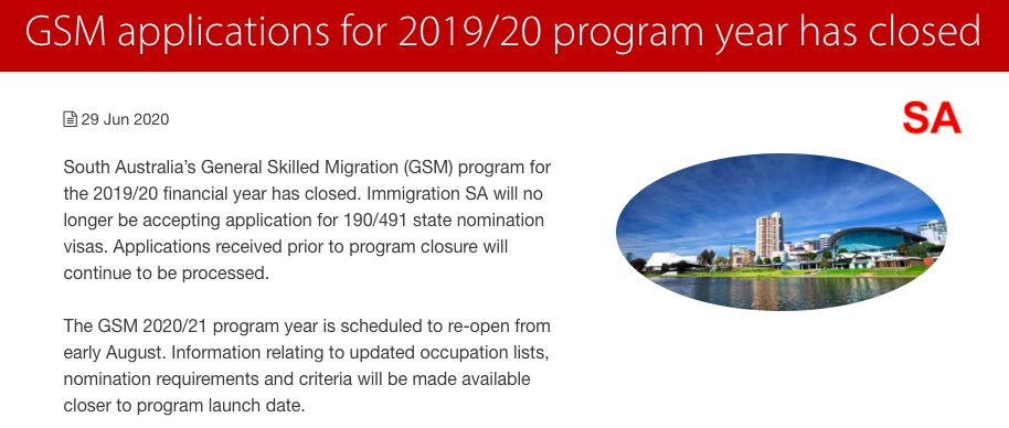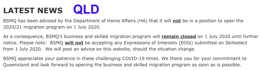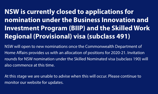 仔细一看各州官网才知道:受疫情、入境限制的影响,各州近期无论是商业还是技术移民的州担保申请都处于暂时关闭状态,重启时间将至少在10月4日(联邦政府发布新政)之后。