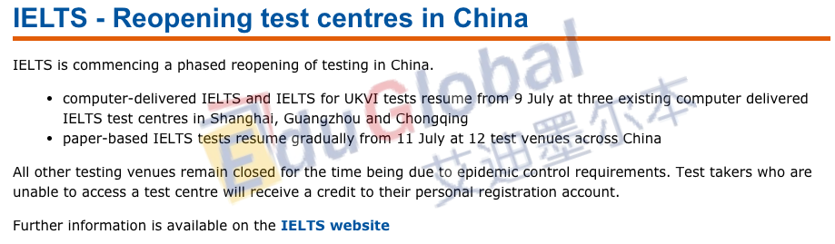 说完了这么多坏消息,总得有个好消息吧!没错,好消息还是有的:中国地区部分雅思(机考、纸质)考试中心将于7月9日(星期四)逐渐恢复开放,具体分为3个阶段: