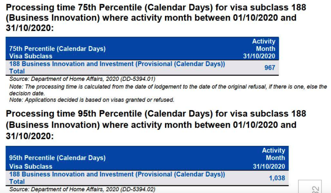在移民局10月所审批的188(包括商业创新类、投资类和显著投资类)签证中,75%的签证在967天(2年8个月)内获批,95%的签证在1038天(2年10个月)内获批;而即使是签证审理时间的平均值也达到了850天(约2年4个月)。虽然移民局在新财年将其计划的商业移民名额增加了近一倍,但从10月的数据来看,近期的审核速度仍慢于往常。