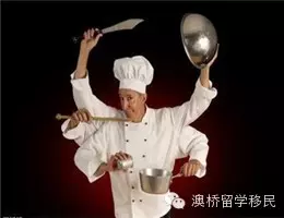 对于大陆的厨师来说,来澳洲是一件非常困难的事情,因为要考雅思,最少要5分的成绩,分数不够就要拿钱砸。雅思,金钱,都不是一个普通的中国厨师能够负担的起的。所以在澳洲的厨师大部分都是留学生半路出家改行的,其中大部分都是学商科的学生。