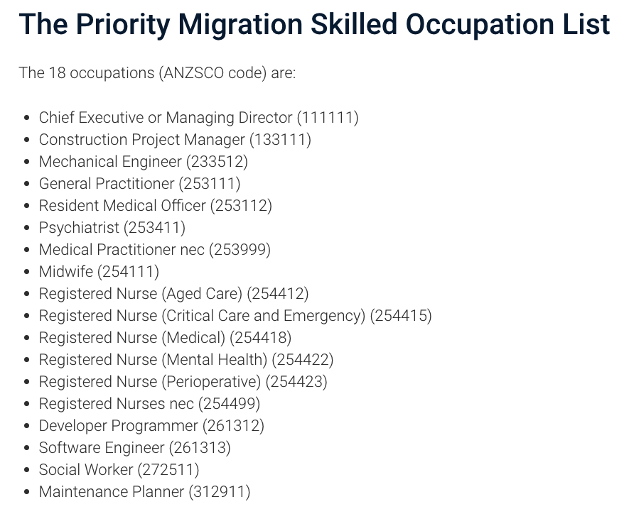 满足该职业清单的申请人,可优先申请482(短缺职业临时工作签证)、494(偏远地区雇主担保临时签证)、186(雇主担保永居签证)以及187(偏远地区雇主担保永居签证)。疫情发生后,各州也都参照移民局的“关键行业”调整了各自的州担保职业清单。例如新州的190职业清单、维州的州担职业范围就均与该优先职业清单吻合。