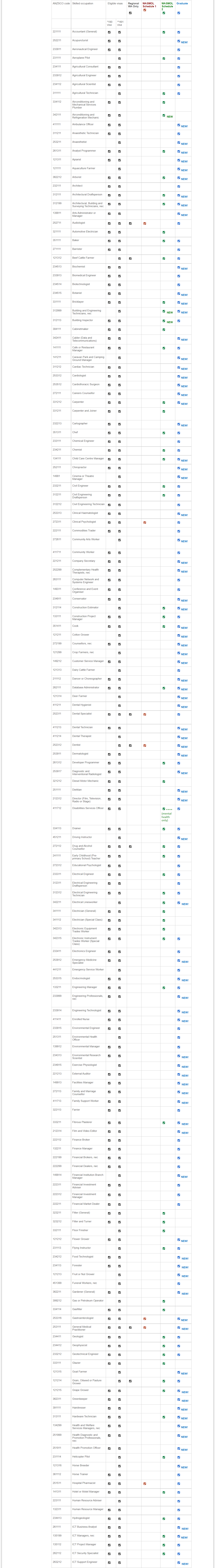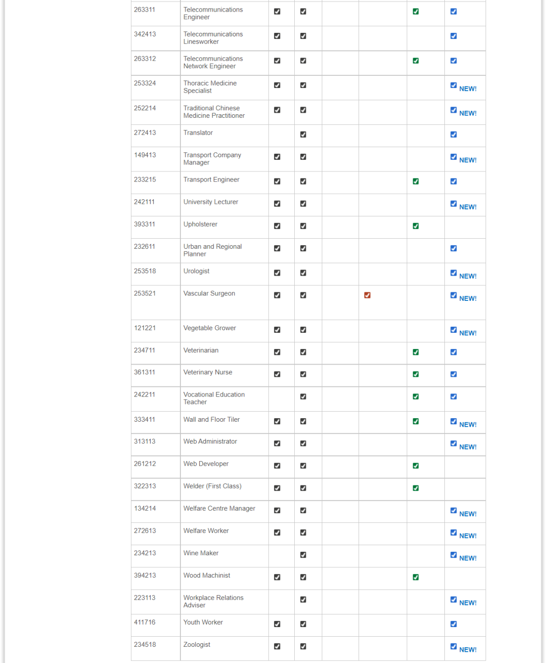 毕业生分支就更多了,西澳政府尤其对本州毕业生大开绿灯,有300多个职业可以申请,包括热门专业会计、针灸师、工程、建筑、糕点师、汽车维修、生物化学、餐厅经理、厨师、社区服务、牙科技师、营养师、教育、电工、护理、金融、美发师、IT、景观等众多专业。详情请看下表。几乎所有热门职位都有它。