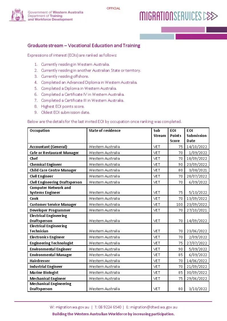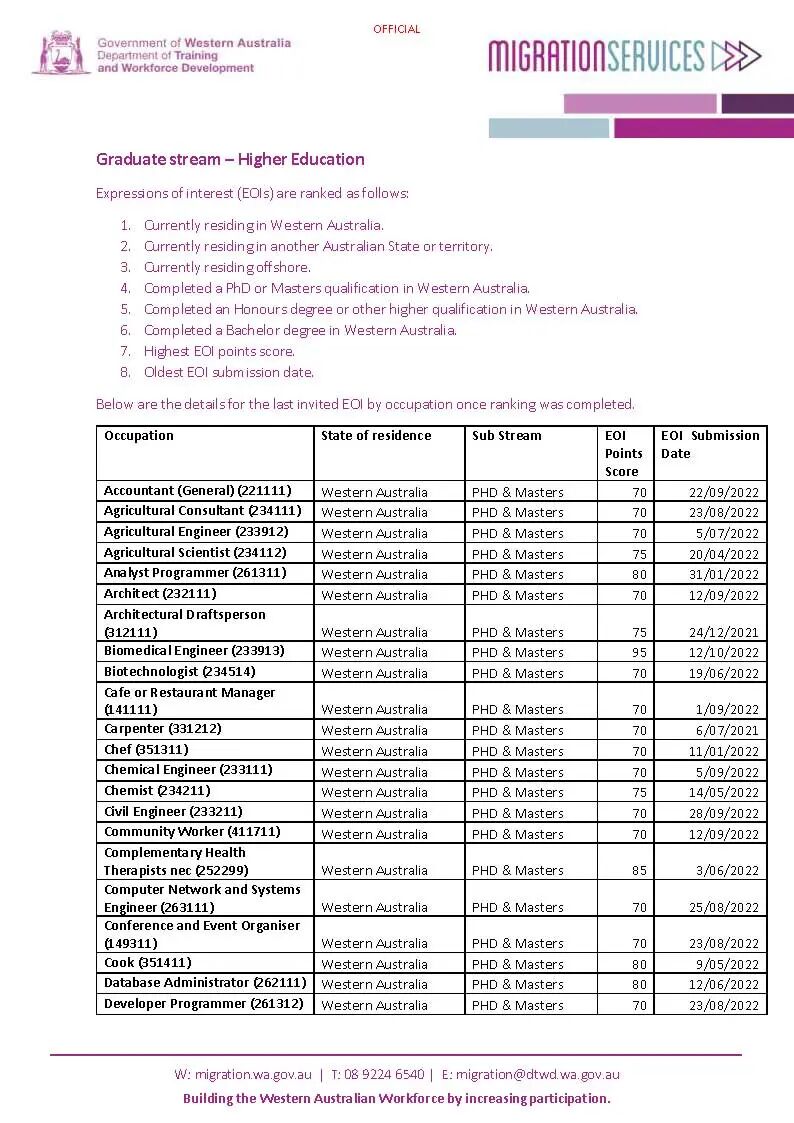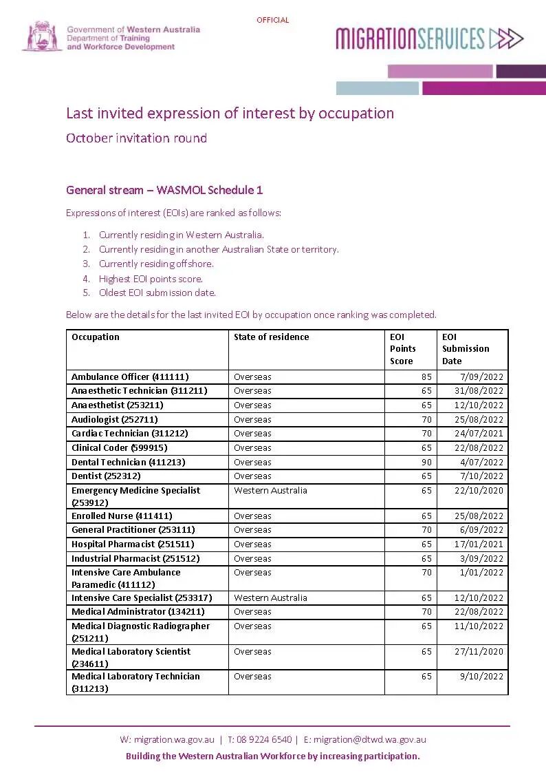 该分支本身并不要求申请人一定要在西澳居住,因此此次邀请中不乏一些外州的申请人获邀。