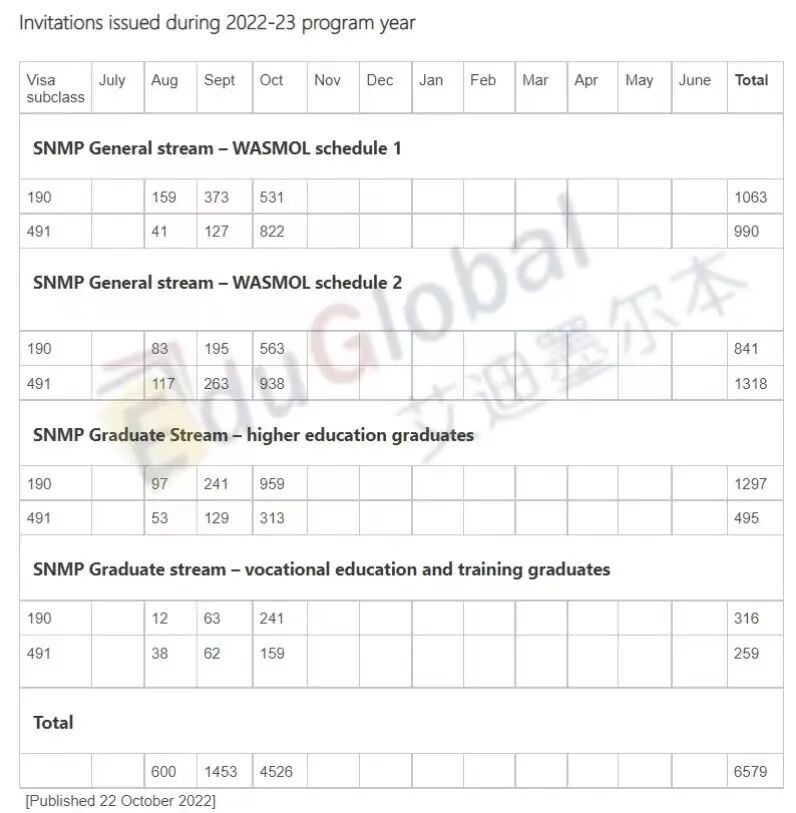 就在前两天(10月22日)西澳洲政府发放了大量190/491签证邀请,此轮西澳洲共发出高达4526份邀请,是8、9两月发放邀请总和的2倍多!!!