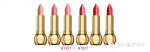金灿双彩唇膏 Diorific Lipstick 6色选:重头戏!焕彩双色,完美地结合两款不同质的唇膏:丝绒雾面-色彩持久、金属光泽-闪亮璀璨。每个颜色都很耀眼!广告模特使用的是#007~