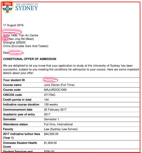 • 后经顾问老师建议,墨尔本大学硕士的课程长度为一年,远远短于悉尼大学的3年课程长度,学生在国内已有一定的工作经验和基础,毕业后想回国就业,于是决定接受墨尔本大学的法学硕士专业录取通知书,尽早完成学业回国工作。