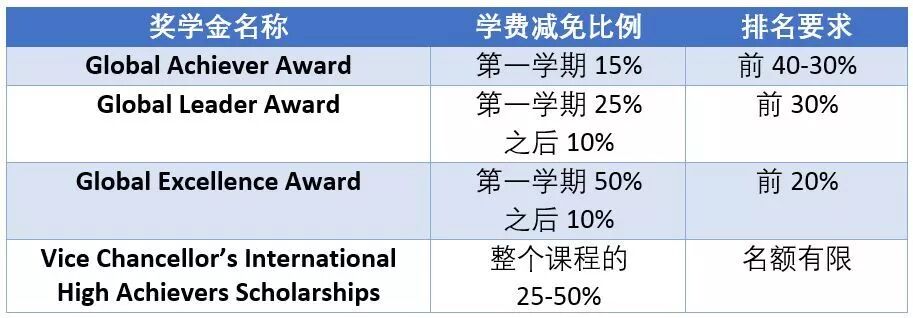 除了大专直升硕士、毕业直接移民的福利之外,CDU本身还给表现超群的同学们准备了丰厚的奖励,根据同学们在所有申请中的综合实力排名,学校由低到高地一共准备了四种奖学金,详情如下: