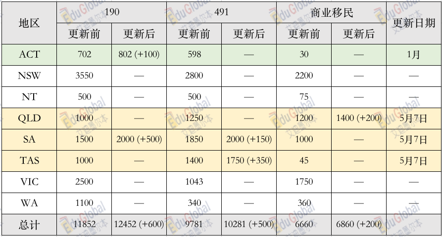 此次的配额增加,可谓在很大程度上提高了了南澳、塔州已递交或准备递交190、491州担保者申请成功的概率。