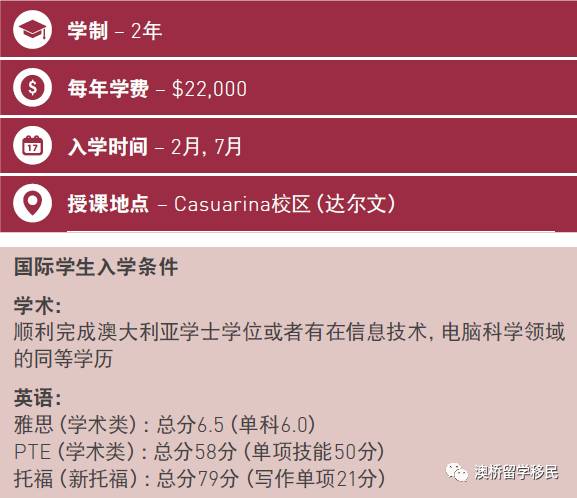 - 从北领地CDU的Master of Information Technology (Software Engineering)专业毕业 学历分15分+澳洲学习5分+偏远地区5分