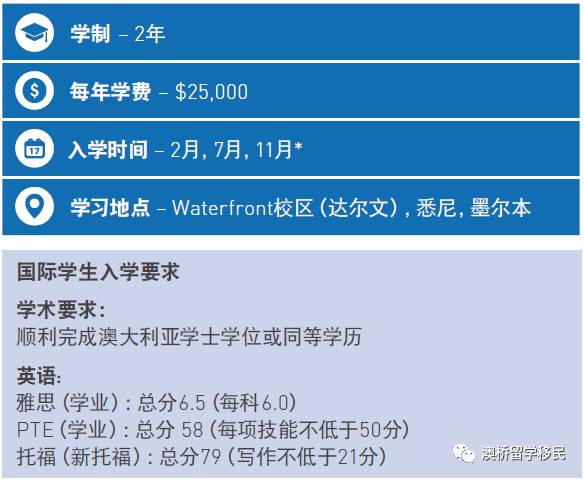 该课程对英语的要求相对其他学校要低一些,如果雅思能够达到总分5.5分,学生可以申请20周语言课,只要顺利完成语言课,就能直接入读正课,无需再提交雅思成绩。这对于中国学生来说绝对是一个好消息。