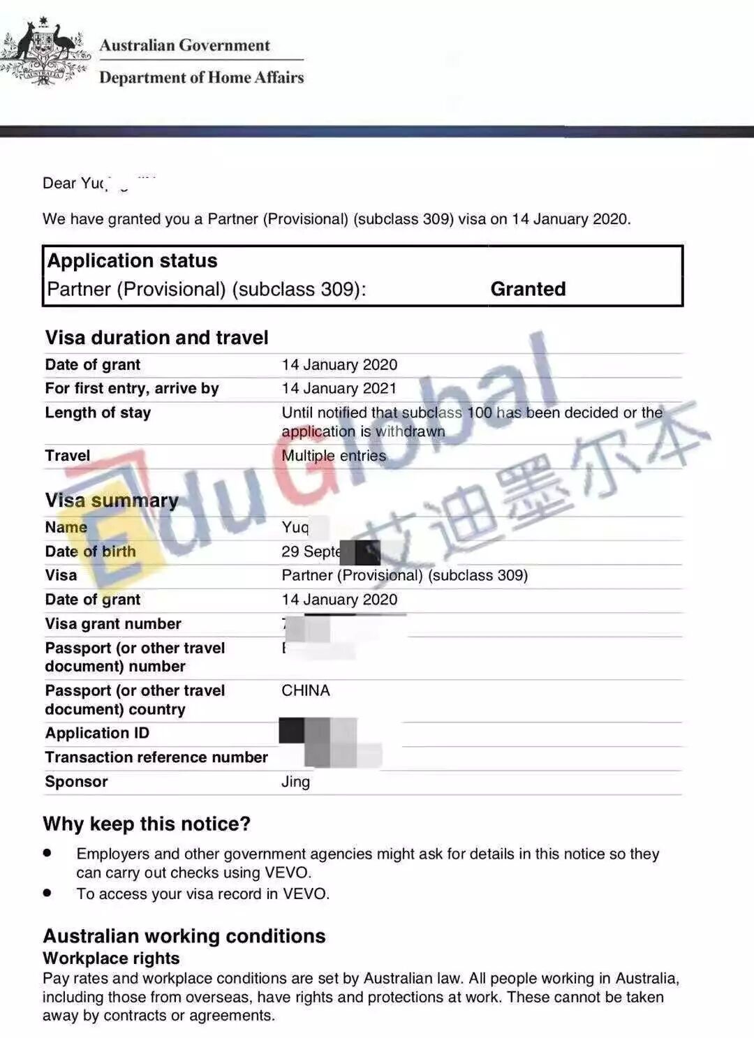 所爱隔山海,山海皆可平——最经典309配偶临时签证案例分析