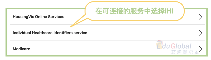 2.点击后会跳转到可链接的服务列表,选择 individual healthcare identifiers service。