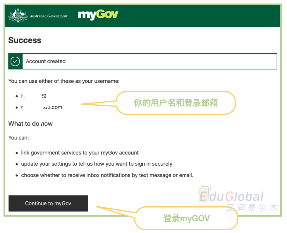 ✅ 申请myGOV账号