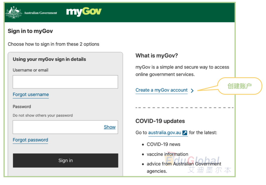 1.打开澳洲政府官网:https://my.gov.au,创建myGOV账户。