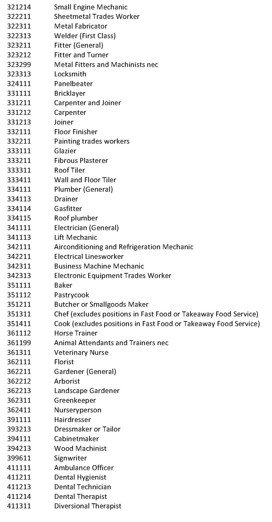 | 342111 | Airconditioning and Refrigeration Mechanic |