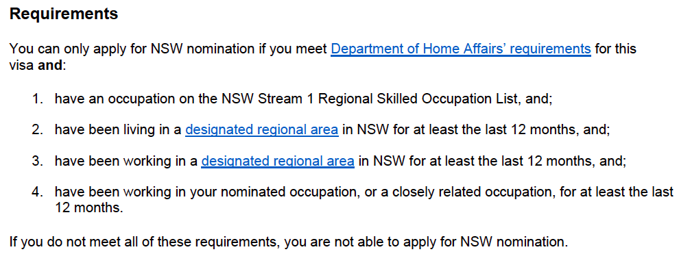 提名职业在I类(stream 1)州担职业清单上 - 过去12个月在新州偏远地区(即除悉尼及周边)居住