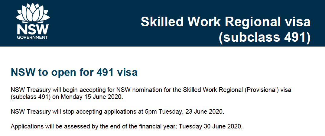 新州将于下星期一对新州从业者(stream1)开启为期一周的491申请“闪电战”窗口,并将于本财年末完成所有审理!