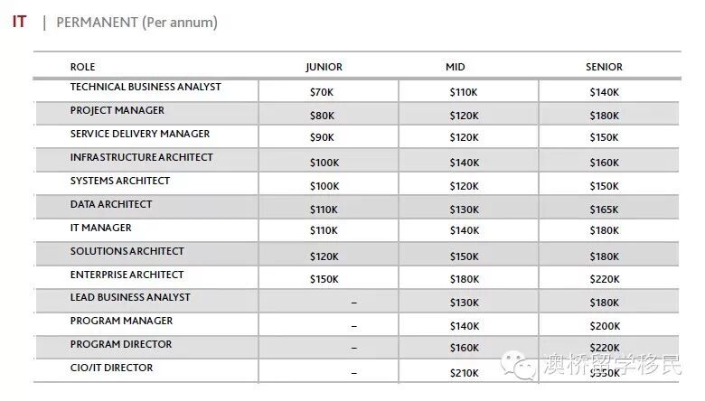 除此之外,2015薪资指南重点分析了会计金融、IT、项目管理、风险管理和战略管理等5个领域的劳动力需求和薪资预期情况,希望这样的统计可以给已经移民澳洲或者正在移民路上的求职者们一点参考和建议。