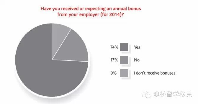 不过值得开心的是,有74%的人士可以拿到2014年度的奖金,其中31%的奖金涨幅超过了上年度的13%。