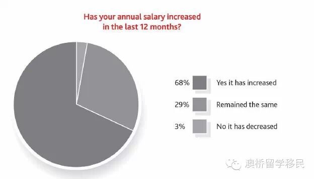 调查显示:68%的澳洲公民和永久居民的薪资较上一年度有了提高。其中51%的薪资增幅在1-4%,而18%的涨幅则超过了13%。