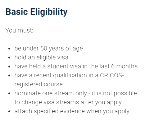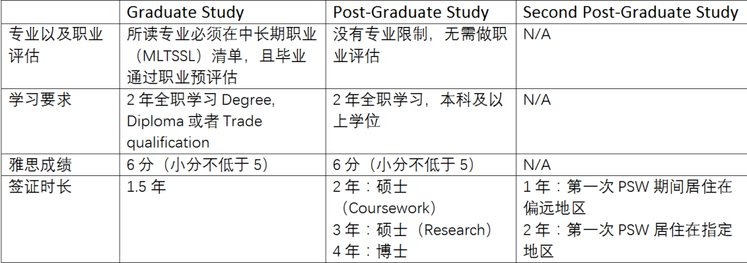 适用于在澳洲完成任意专业的高等教育(本科及以上学位)同学,签证时长为2-4年。