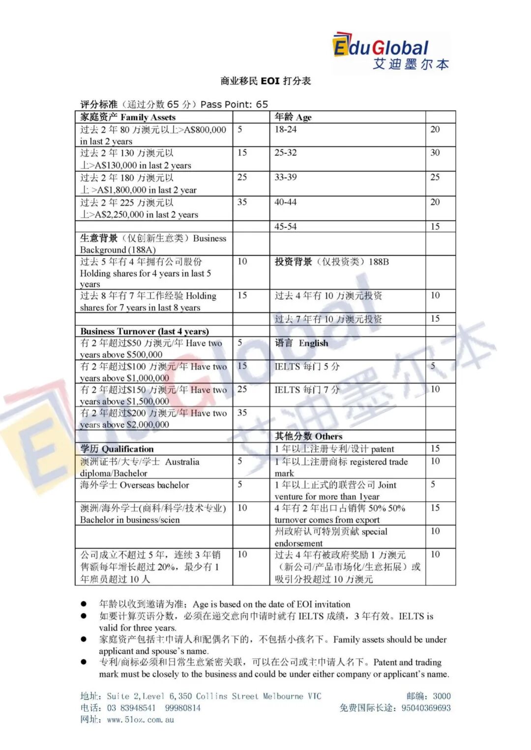 - 如果申请人无法提供英文水平可以用以下条件来豁免在提交申请前6个月雇佣6个以上全日制员工并且在提交申请前一年公司的年营业额在200万澳币以上