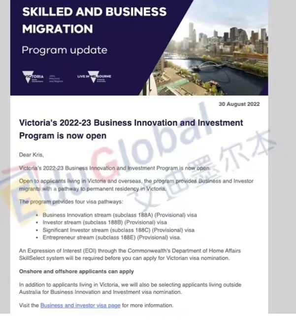 今天小艾收到了维州政府的通知,188商业移民22-23财年已经开放申请。
