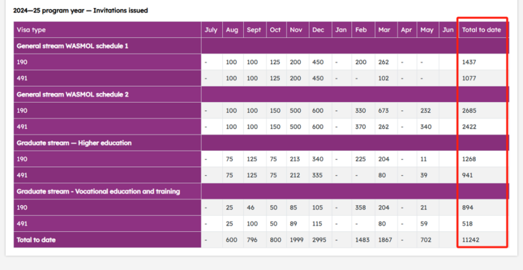 - 491签证:已发放4,958个邀请,实际使用1,244个配额(约25.1%通过率)