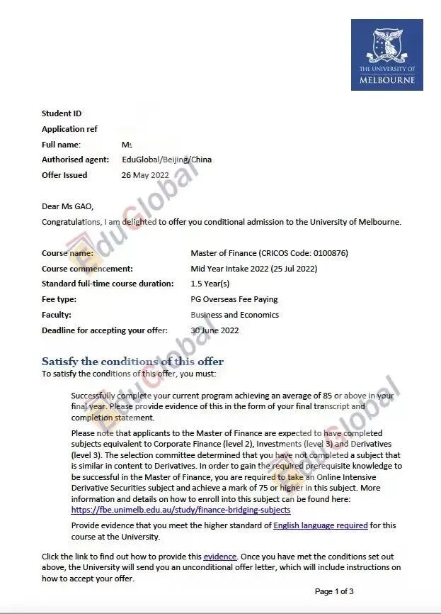 来看看部分墨尔本大学金融硕士专业offer集锦,下一个也许就是你哦!