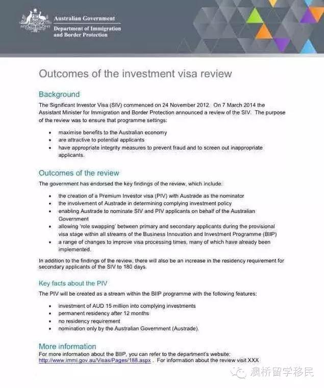 最后,与顶级土豪金PIV一起公布的,还有一系列的投资移民签证改动意向,和PIV一比已经感觉不重要了,大家随便看看吧: