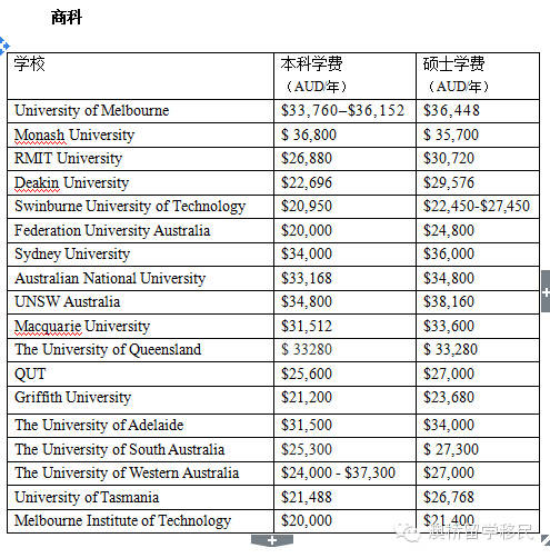 除此之外,万金油专业—商科,如管理、经济、市场、国际贸易等,虽不能走独立技术移民,但是有志于走雇主担保道路的亲们还是可以大胆选择。费用从AUD20000到AUD40000不等,任君挑选,童叟无欺。