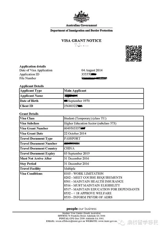(下图附上王医生许可公开的下签信,为大龄男女青年留学澳洲欢欣鼓舞一下)