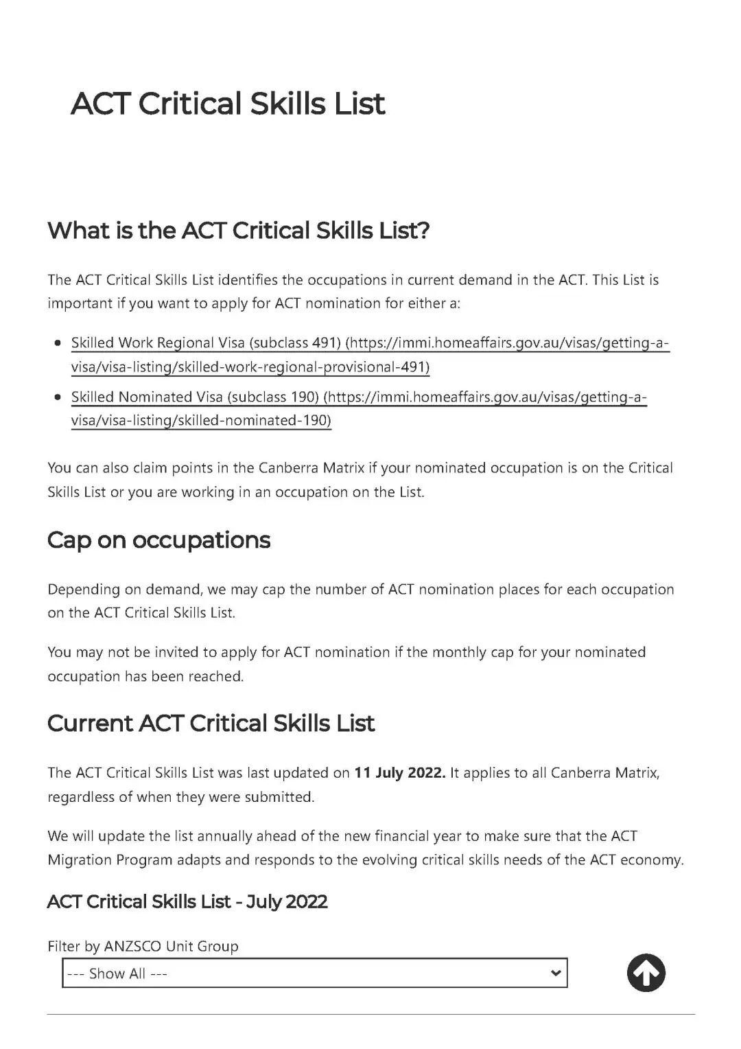 - 457/482签证持有人,在堪培拉工作满3个月,提名职位不必在ACT关键技术职业清单上,或