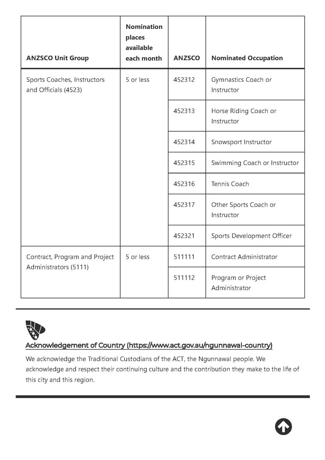 - 堪培拉小生意,提名职位不必在ACT关键技术职业清单上,以下业务不符合要求:分租、拼车、出租车、送货、快递服务或以前用于获得ACT提名资格生意